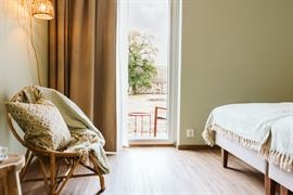 Boendet är omsorgsfullt utformat för att förena lugn och komfort, med ekologiska produkter, välutrustade rum och naturnära atmosfär som inbjuder till återhämtning. I omgivningen väntar aktiviteter som vandring, cykling, skidåkning och stillsamma promenader runt sjön — eller varför inte upptäcka historien om den anrika säterimiljön?